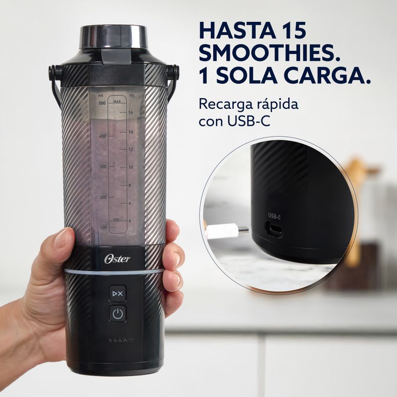 LicuadorasTecnologia-LicuadorasTecnología reversibleOster Licuadora Portátil, GoMAX, 590 ml de Capacidad, para Smoothies, Negro, BLSTGFP-B20-000