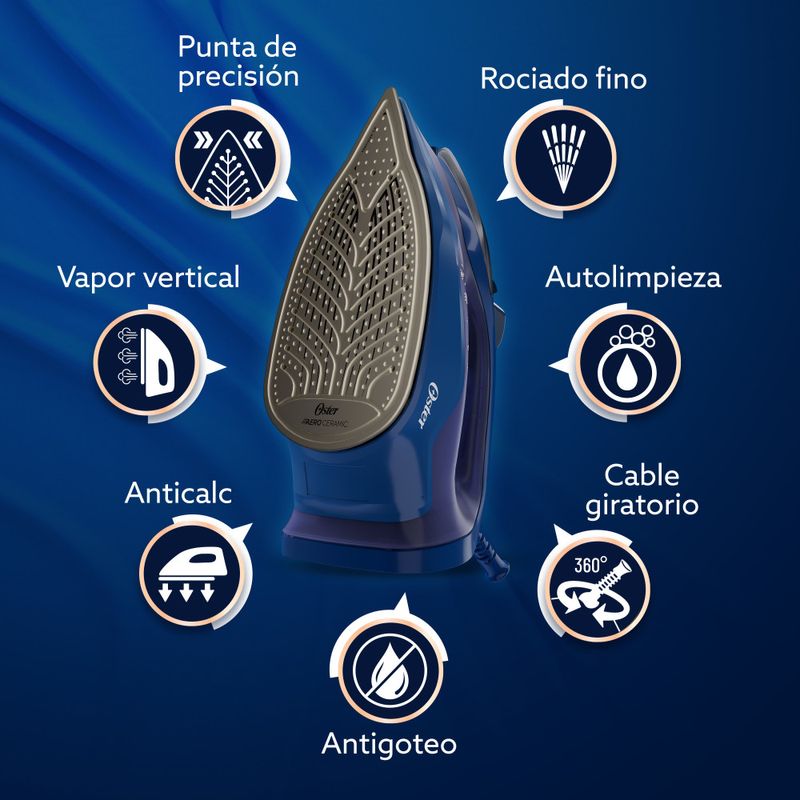 Cocina y hogarHogar y PlanchasPlanchas de ropaPlancha de vapor Oster® , AeroGlide S7200, azul oscuro, GCSTAC7202-052